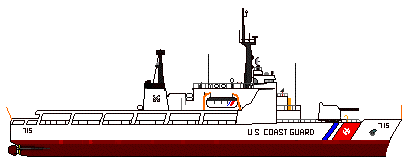 | The largest of the Coast Guard fleet is the 399 foot Polar class ice breaker as representated by the Polar Sea shown here. The icebreakers are painted red to add contrast to the ice and snow found in the polar regions. The Polar Sea was built in 1976. She is homeported in Seattle, WA. |