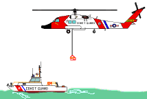 | The 55 foot utiltiy boat is used in a variey of missions including SAR and ATON's. The 55103 is currently assigned to Station Parramore Beach at Wachapreague, VA. Her white paint was removed in 1999 to reduce weight. | The 41 footer is often used in SAR cases that involve the use of aircraft such as this H60 J "Jayhawk" helo. |